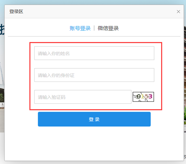 (2)输入姓名、身份证号、验证码,点击:登录。