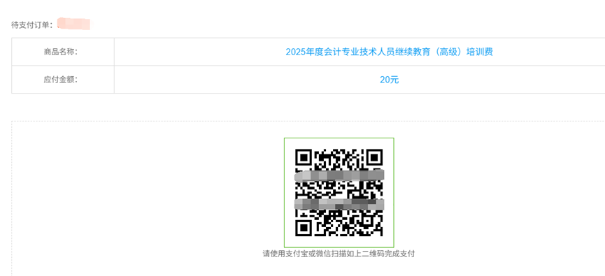 (1)选择付款方式,可使用支付宝或微信扫描支付。