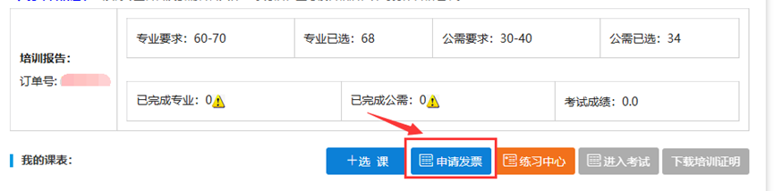 (2)缴费成功后,可点击“申请发票”按钮填写开票信息,申请发票。